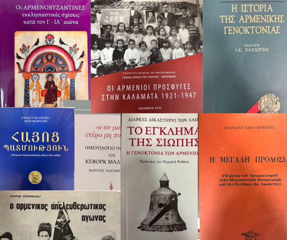 Στην Έδρα μας λειτουργεί δανειστική βιβλιοθήκη με πλούσια και συνεχώς εμπλουτιζόμενη συλλογή βιβλίων.Οι ενδιαφερόμενοι έχουν τη δυνατότητα να την επισκεφθούν και να ένα ή περισσότερα βιβλία, κατόπιν συνεννόησης. 1.«100 χρόνια από τη Μικρασιατική Καταστροφή»Αλέξανδρος Πηγαδάς2.«1922 – Η Ελλάδα υποδέχεται τους Αρμενίους πρόσφυγες»«Περιοδικό Αρμενικά»3.«40+1 Ομολογίες Αγάπης»Αλισία Γκιράγκοςιαν4.«90 χρόνια δημιουργικής πορείας – Ζαβαριάν»Λεύκωμα του Σχολείου Ζαβαριάν5.«An…